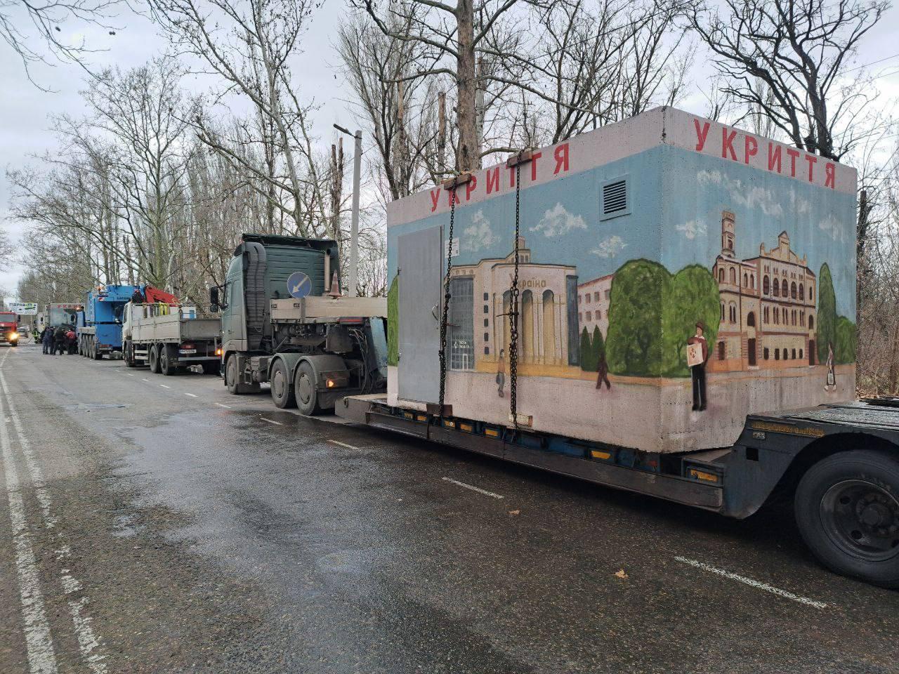 Oprócz tego mamy mobilne schrony instalowane na zewnątrz, obok oddziału. Są one wykonane z betonu, muszą więc być dostarczane przez duże pojazdy, przez dźwigi. Można je umieścić np. przy przystanku autobusowym, aby w razie alarmu przeciwlotniczego nasi współpracownicy, klienci oraz zwykli ludzie czekający na autobus na przystanku mogli z nich skorzystać. Nie zamykamy tych zewnętrznych, mobilnych schronów przed osobami, które nie odwiedzają naszego oddziału. Nie byłoby to sprawiedliwe, prawda?